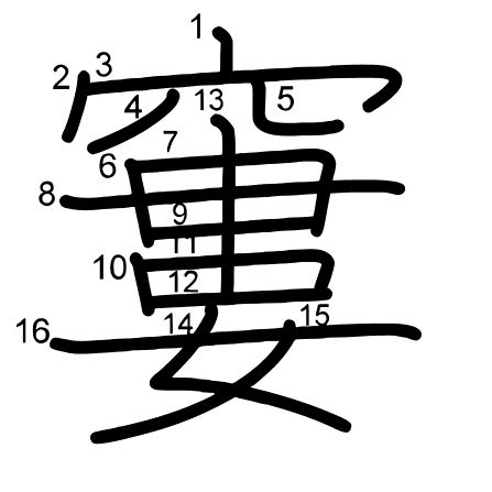 Hlavný radikál: 穴 (116) Radikály: