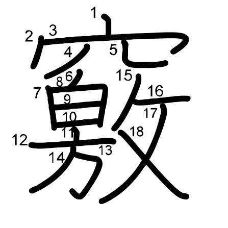 Main radical: 穴 (116) Radicals:
