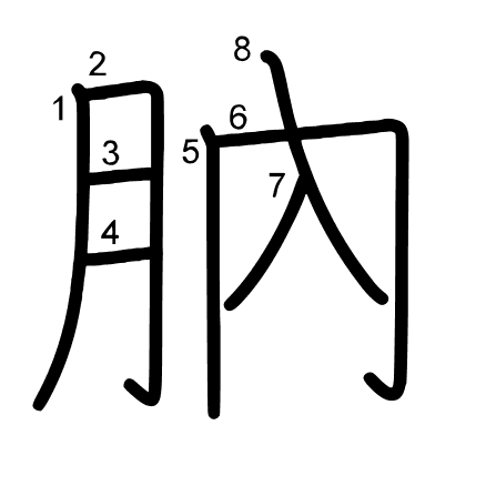 Hlavný radikál: 肉 (130) Radikály: