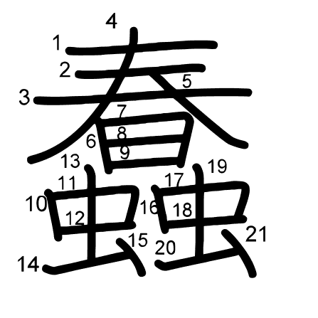 Hlavný radikál: 虫 (142) Radikály:
