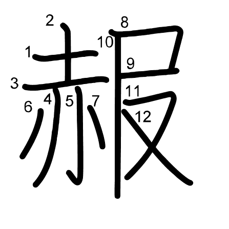 Main radical: 赤 (155) Radicals: