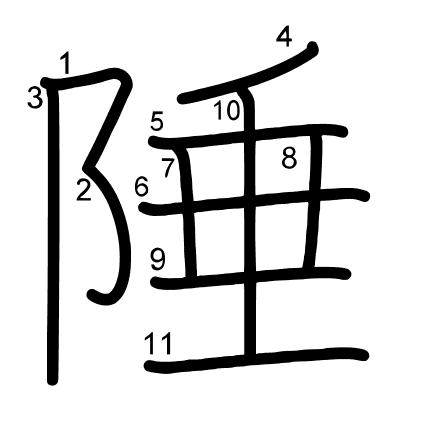 Hlavní radikál: 阜 (170) Radikály: