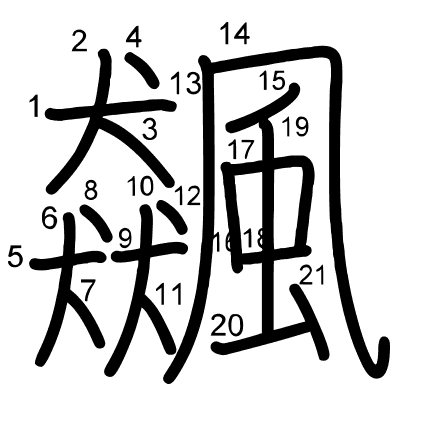 Hlavný radikál: 風 (182) Radikály: