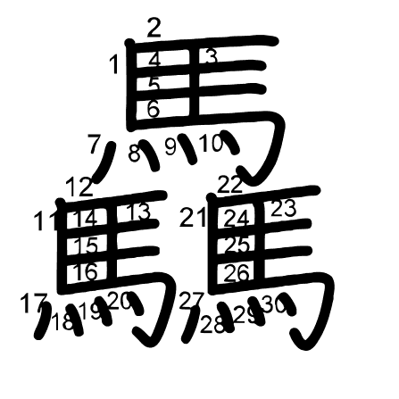 Hlavní radikál: 馬 (187) Radikály: