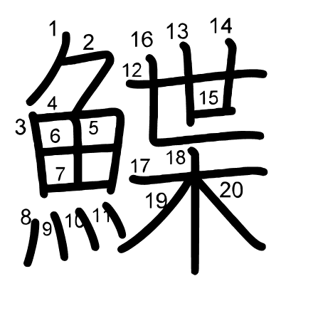 Hlavný radikál: 魚 (195) Radikály: