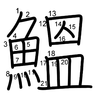 Main radical: 魚 (195) Radicals: