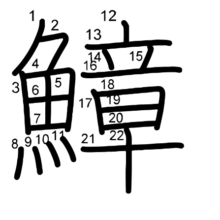 Hlavný radikál: 魚 (195) Radikály: