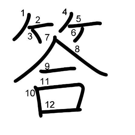 Main radical: 八 (12) Radicals: Jouyou: 2