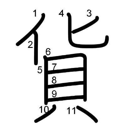Main radical: 人 (9) Radicals: Jouyou: 4