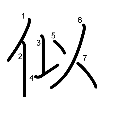Hlavný radikál: 人 (9) Radikály: ⺅ 人 丶 Džójó: 5