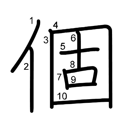 Hlavný radikál: 人 (9) Radikály: ⺅ 勹 豕 口 一 Džójó: 5