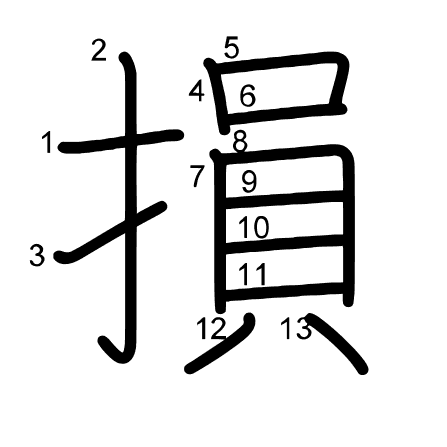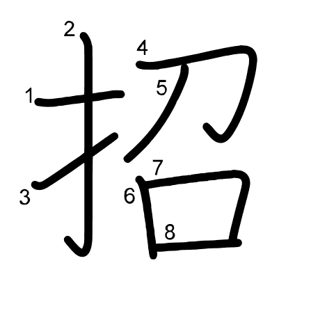 Hlavný radikál: 手 (64) Radikály: 口 刀 扌 Džójó: 5