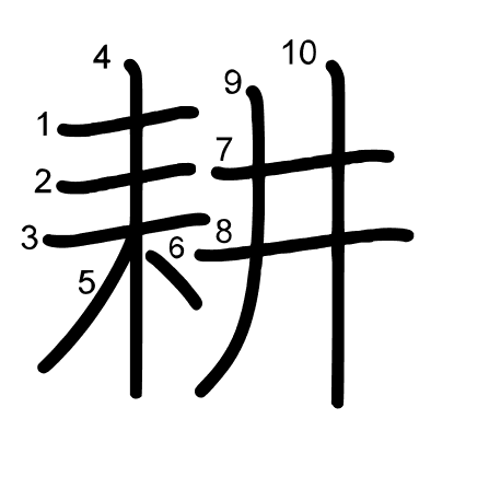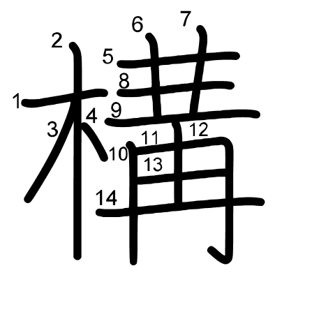 Hlavný radikál: 木 (75) Radikály: 木 冂 一 十 Džójó: 5