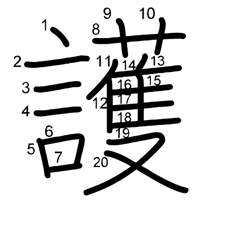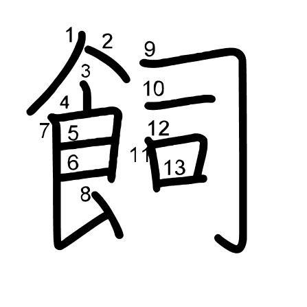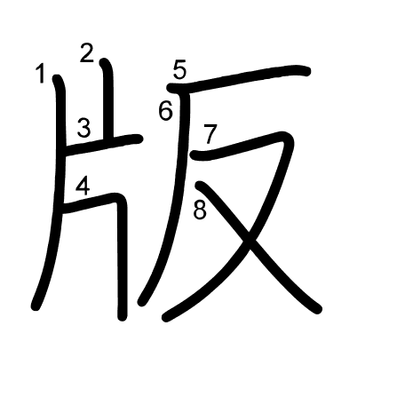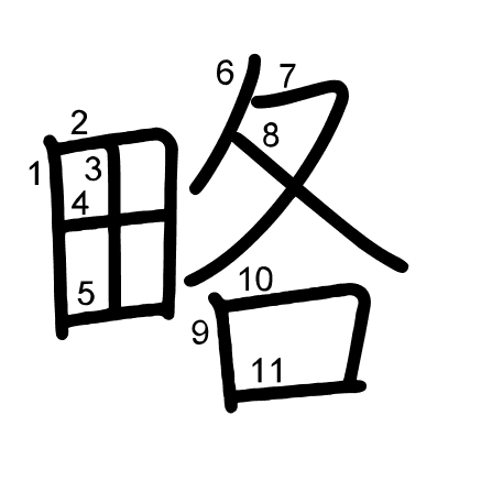 Hlavný radikál: 支 (66) Radikály: 口 十 并 立 亠 冂 攵 滴 Džójó: 5