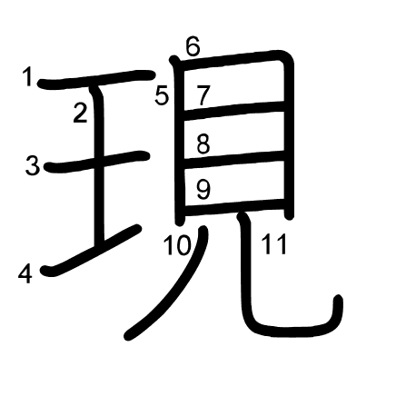 Hlavný radikál: 頁 (181) Radikály: 貝 目 ハ 頁 Džójó: 5