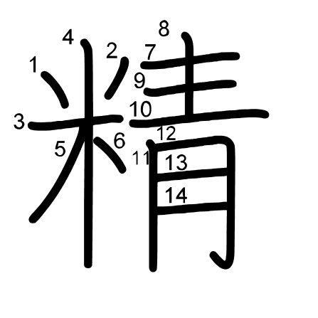 Hlavný radikál: 米 (119) Radikály: 月 青 土 二 米 亠 Džójó: 5
