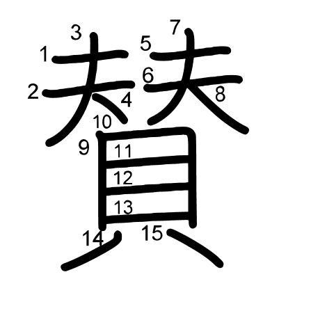 Hlavný radikál: 貝 (154) Radikály: 貝 目 ハ 人 大 二 亠 Džójó: 5