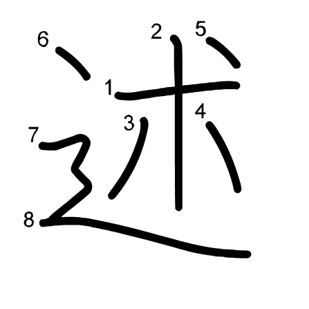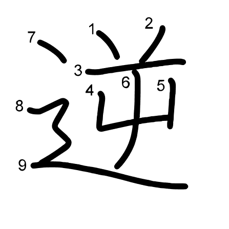 Hlavný radikál: 辵 (162) Radikály: 辶 十 丶 木 Džójó: 5