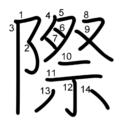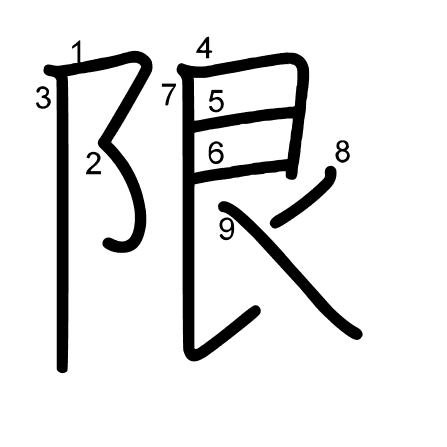 Hlavný radikál: 阜 (170) Radikály: ノ 示 二 小 癶 ⻖ Džójó: 5