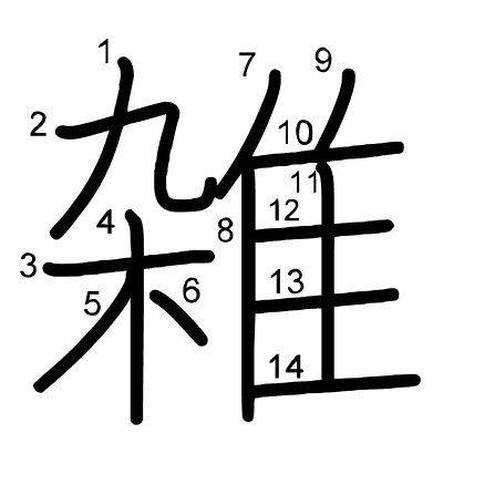 Hlavný radikál: 隹 (172) Radikály: 木 隹 九 Džójó: 5