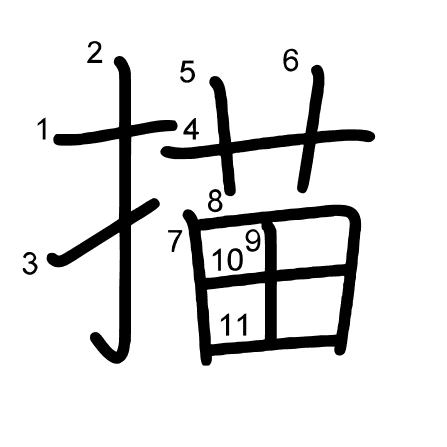 Hlavní radikál: 手 (64) Radikály: 田 扌 ⺾ Džójó: 8