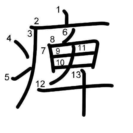 Main radical: 羊 (123) Radicals: 一 王 并 羊 亅 戈 手 Jouyou: 5