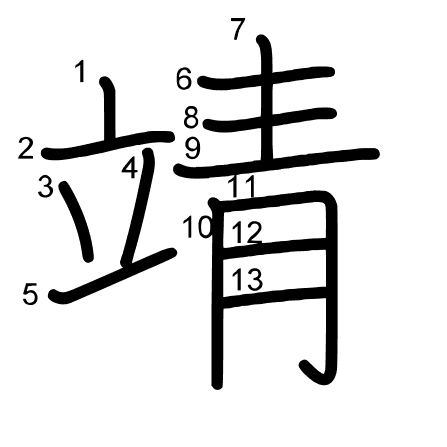 Hlavný radikál: 青 (174) Radikály: 月 青 土 二 立 亠 Džójó: 9