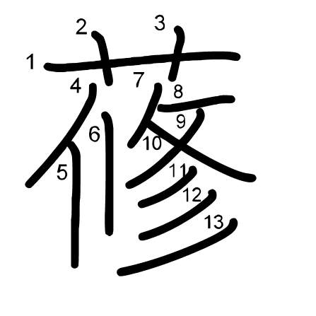 Main radical: 夕 (36) Radicals: 罒 夕 冖 ⺾ Jouyou: 5