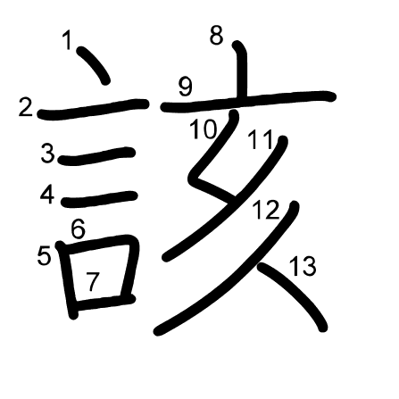 Main radical: 言 (149) Radicals: 言 口 士 Jouyou: 8