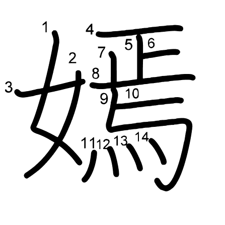 Hlavný radikál: 艸 (140) Radikály: ノ 罒 戈 ⺾ Džójó: 8