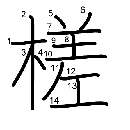 Hlavný radikál: 木 (75) Radikály: 王 水 并 木 羊 Džójó: 3