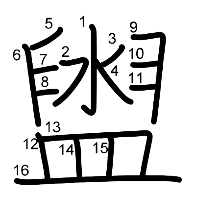 Hlavný radikál: 口 (30) Radikály: | ノ ヨ 口 水 米 隶 聿