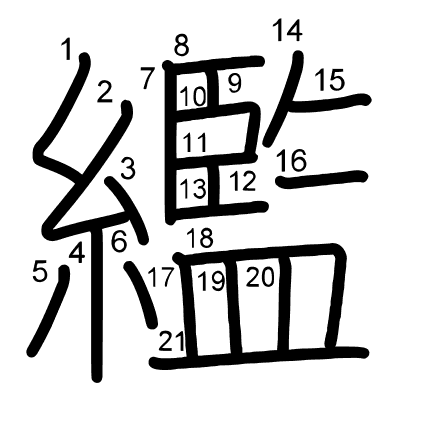 Main radical: 糸 (120) Radicals: 貝 目 ハ 士 糸 幺 小 儿 囗