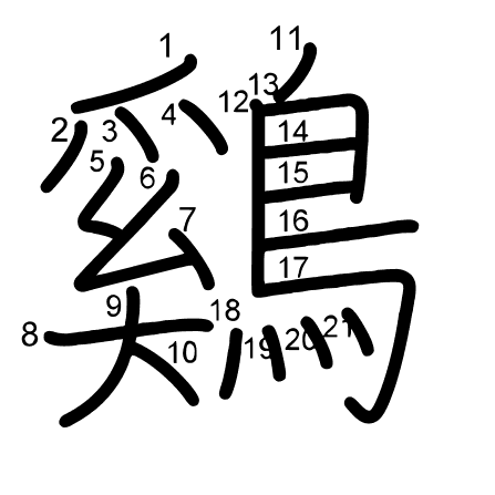Hlavný radikál: 鳥 (196) Radikály: 鳥 灬 隹 宀 Džójó: 8