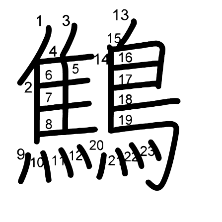 Hlavný radikál: 鳥 (196) Radikály: 九 十 辛 鳥 立 丶 亠 灬