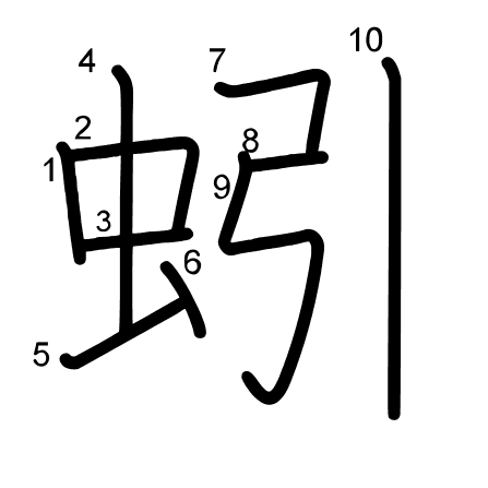 Hlavní radikál: 弓 (57) Radikály: 弓 虫 厶 Džójó: 2