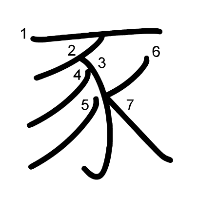 Asie, nasledovat, jít za, pod-, sub-Hlavní radikál: 二 (7) Radikály: | 一 口 Džójó: 8