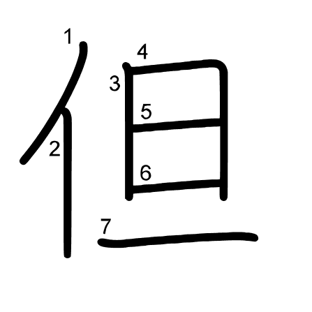 Main radical: 人 (9) Radicals: ⺅ 白 Jouyou: 8