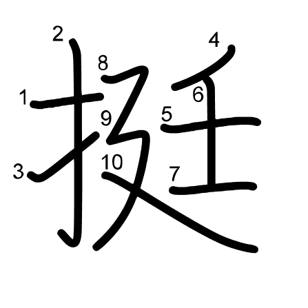 Hlavný radikál: 手 (64) Radikály: 王 廴 扌
