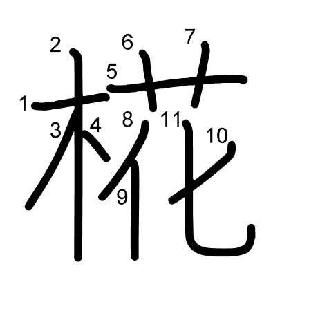Hlavný radikál: 艸 (140) Radikály: 禾 女 ⺾ Džójó: 8