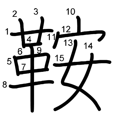 Hlavní radikál: 艸 (140) Radikály: ノ 罒 戈 ⺾ Džójó: 8