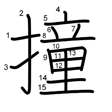 Hlavní radikál: 手 (64) Radikály: 月 亠 厶 扌 攵 Džójó: 8