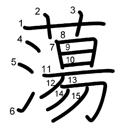 Hlavní radikál: 水 (85) Radikály: 口 氵 豆 并 癶 Džójó: 8