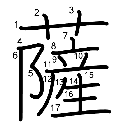 Hlavný radikál: 手 (64) Radikály: ノ 示 二 小 宀 扌 癶 Džójó: 8
