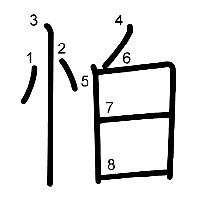 Hlavní radikál: 心 (61) Radikály: 心 夕 卩 Džójó: 8
