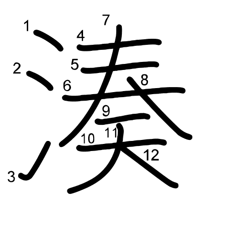Hlavný radikál: 水 (85) Radikály: 氵 田 力 マ Džójó: 8