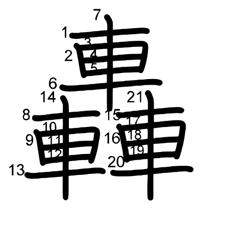 Hlavný radikál: 鹿 (198) Radikály: 一 鹿 比 冂 广 Džójó: 8