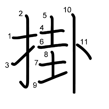 Hlavní radikál: 手 (64) Tahy: 11 obrázek | animace | tabulka
