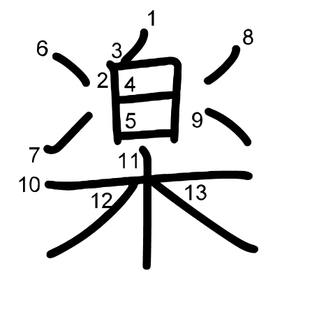Hlavní radikál: 木 (75) Tahy: 13 obrázek | animace | tabulka