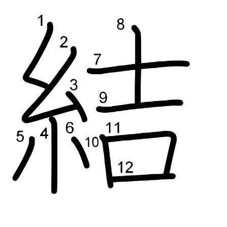 Hlavní radikál: 糸 (120) Tahy: 12 obrázek | animace | tabulka